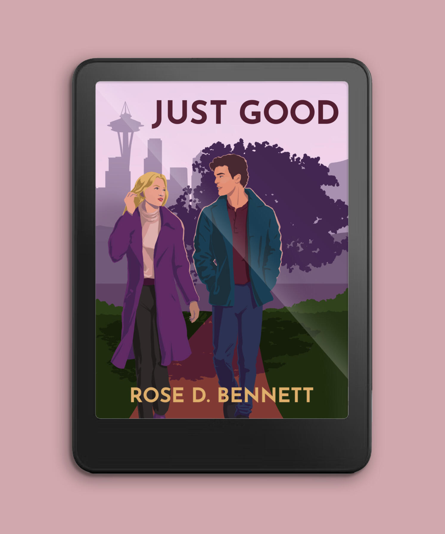 The cover for Rose D. Bennet's debut novel, Just Good, was so fun to design! The brief included: two characters not touching, Seattle location, and a purple-heavy colour scheme. I created some on-trend promotional materials for the book, as well.